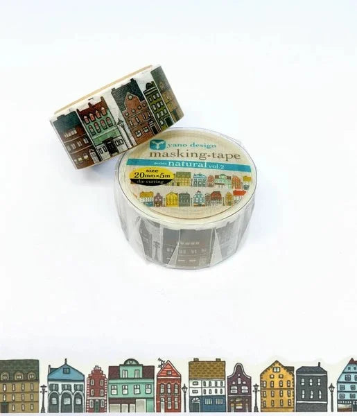 Dreaming of charming cobblestone streets and colorful Nordic houses? Well, we can't actually transport you to Scandinavia (yet!), but we can bring a taste of its magic to your crafts! This delightful die-cut washi tape features a parade of adorable Scandinavian buildings, ready to add a touch of whimsical charm to all your projects.