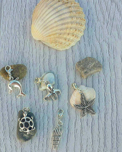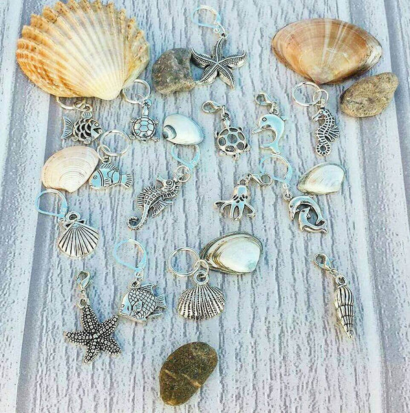An essential tool for crocheters and knitters alike, this set contains 5 random sea themed tibetan silver stitch markers.
