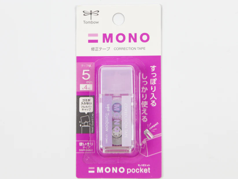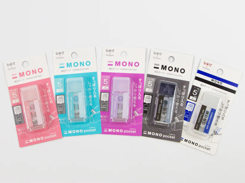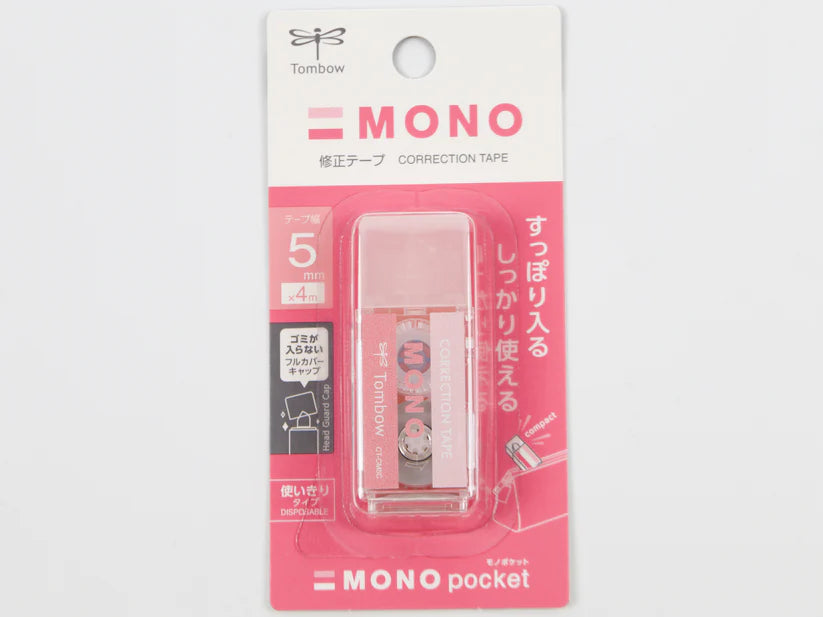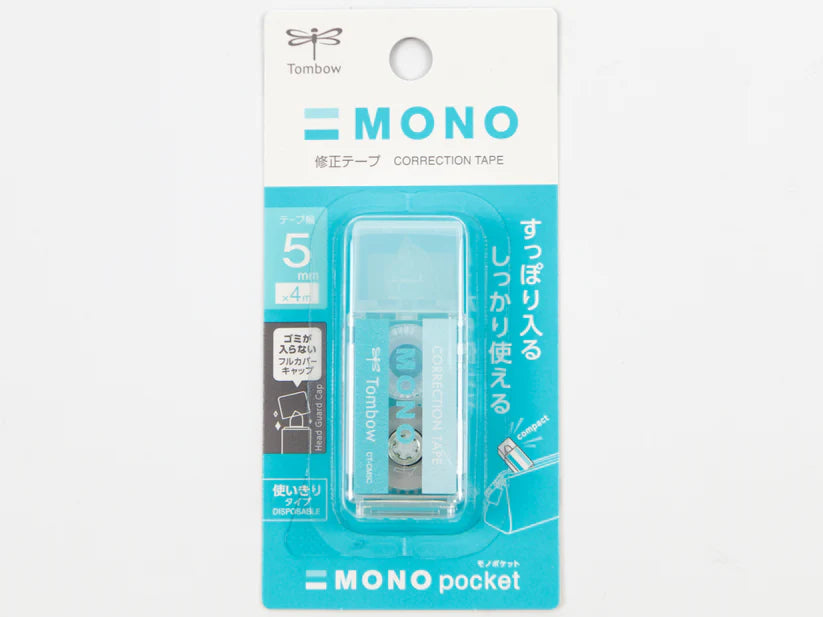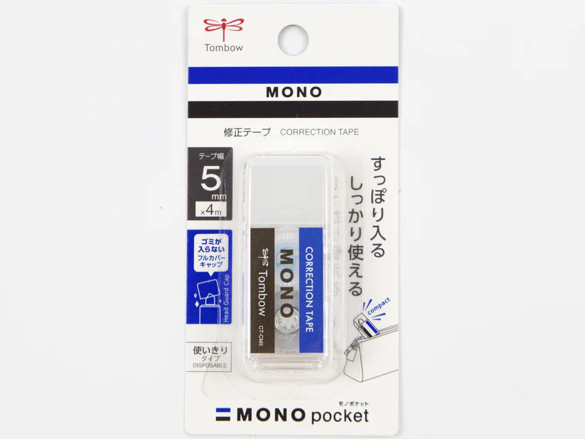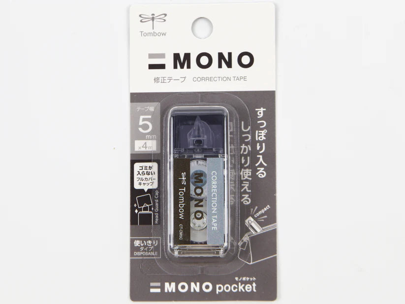Tombow Mono Pocket Correction Tape is smooth white 5mm wide correction tape in a compact case that looks like their original eraser. Airtouch Technology and improved tape adhesion allows users to easily apply correction tape even with the lightest touch. Features a pivoting tape head and unique tape lock system that automatically stops tape and provides smooth, skip-free application.