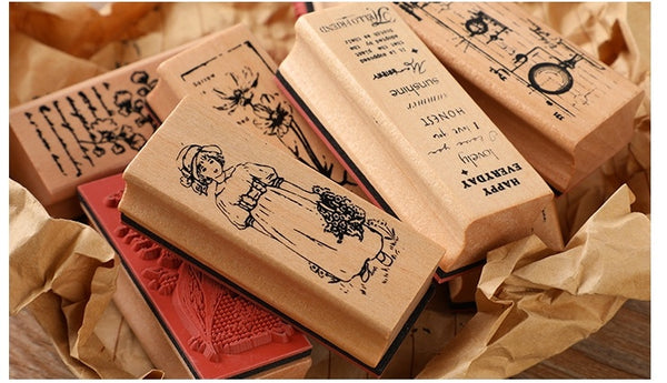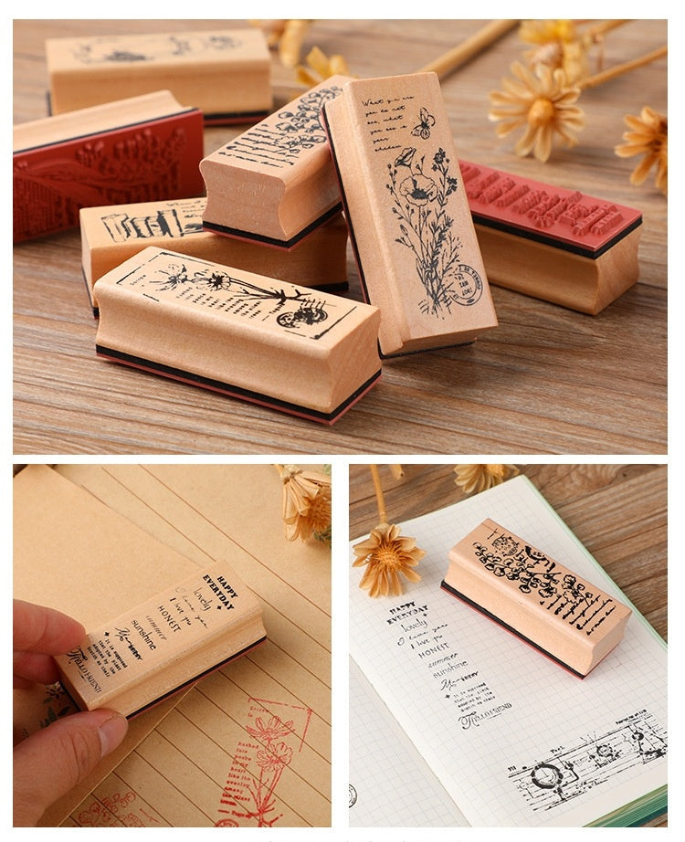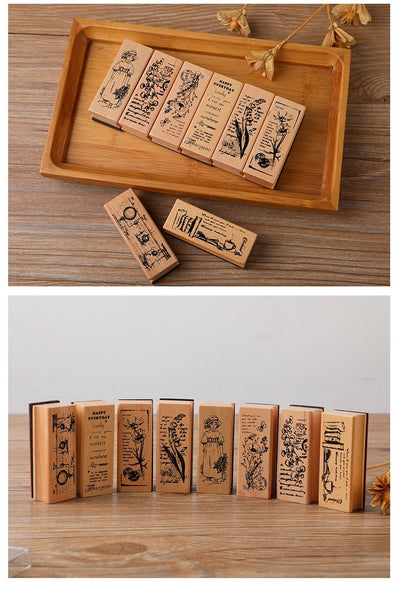 Vintage Style Wildflower & Coffee Wooden Block Stamp