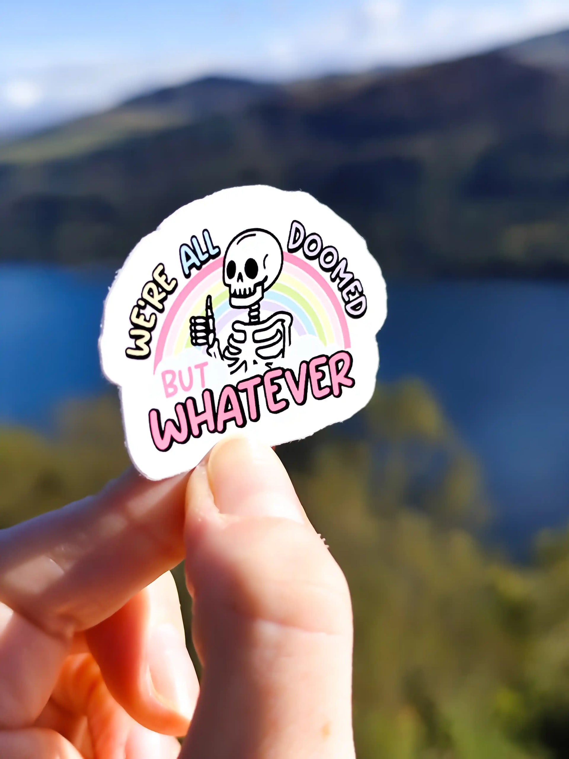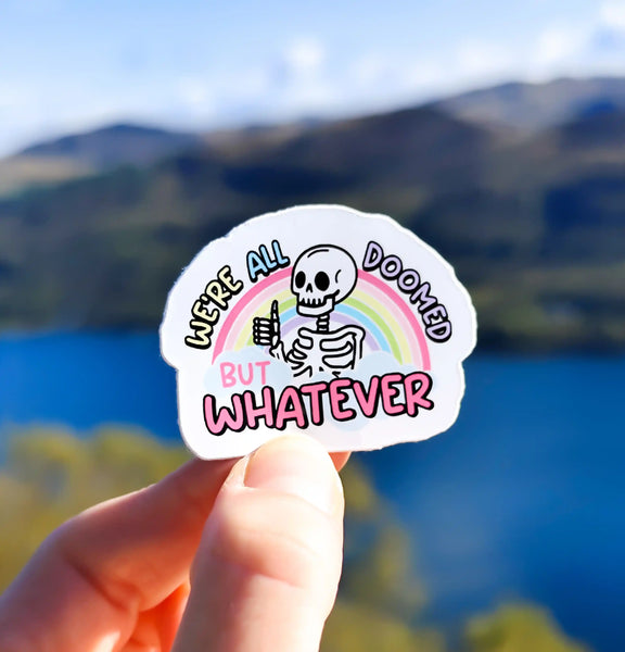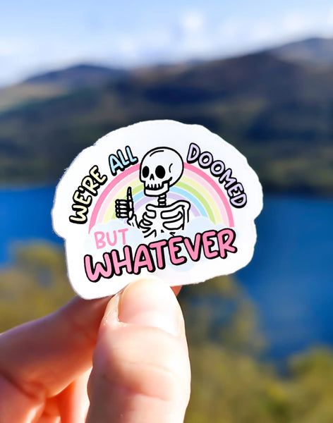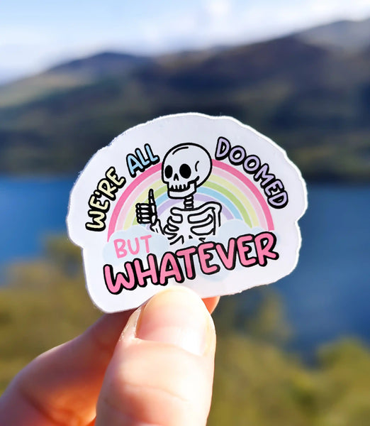 This sticker is the perfect piece of piece of stationery for anyone who's just trying their best while the world burns. Featuring a cute skeleton and a delightful pastel colours. The ultimate statement for those moments when you just have to shrug and say, "But whatever."