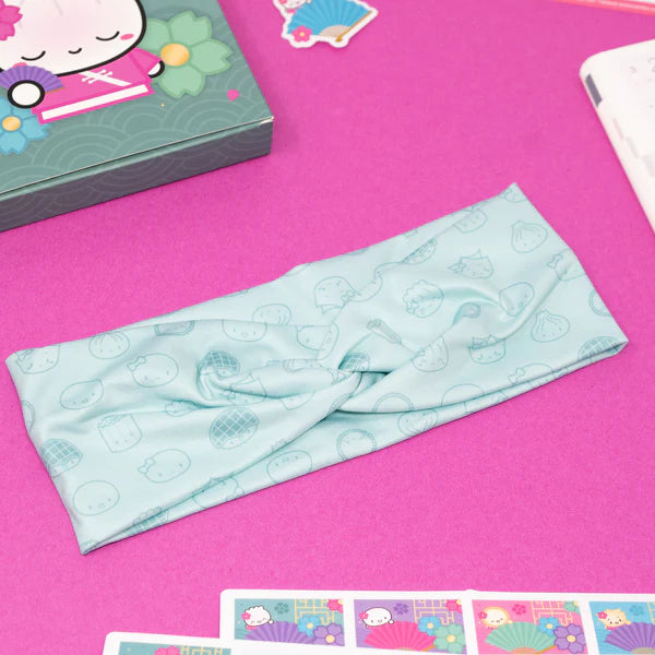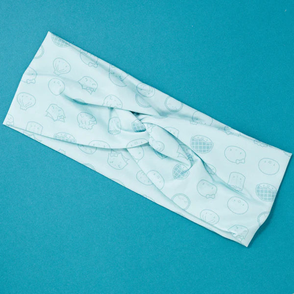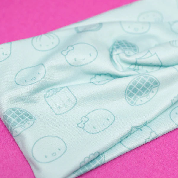 - ~9"L x ~3"W cotton elastic headband with printed design