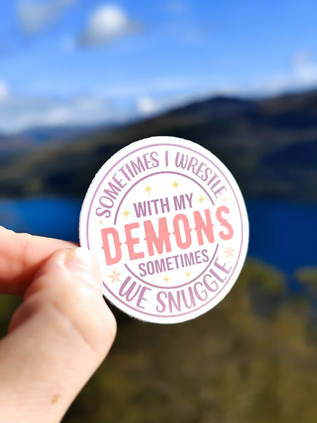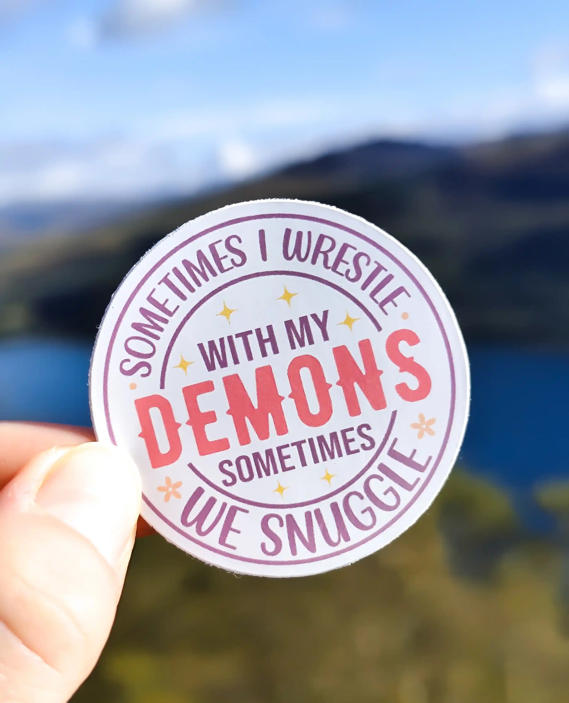 If this "Sometimes I wrestle with my demons, sometimes we snuggle" sticker speaks to your soul, then this is your sign to treat yourself. It’s a brilliant way to acknowledge your struggles with a dash of self-deprecating humour and a whole lot of relatability.